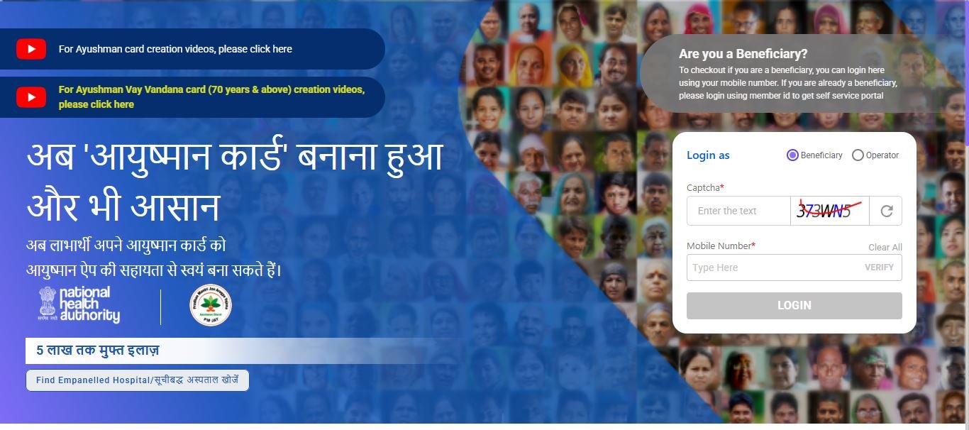 • सबसे पहले आपको इसके लिए आयुष्मान कार्ड की ऑफिसियल वेबसाइट पर जाना होगा |